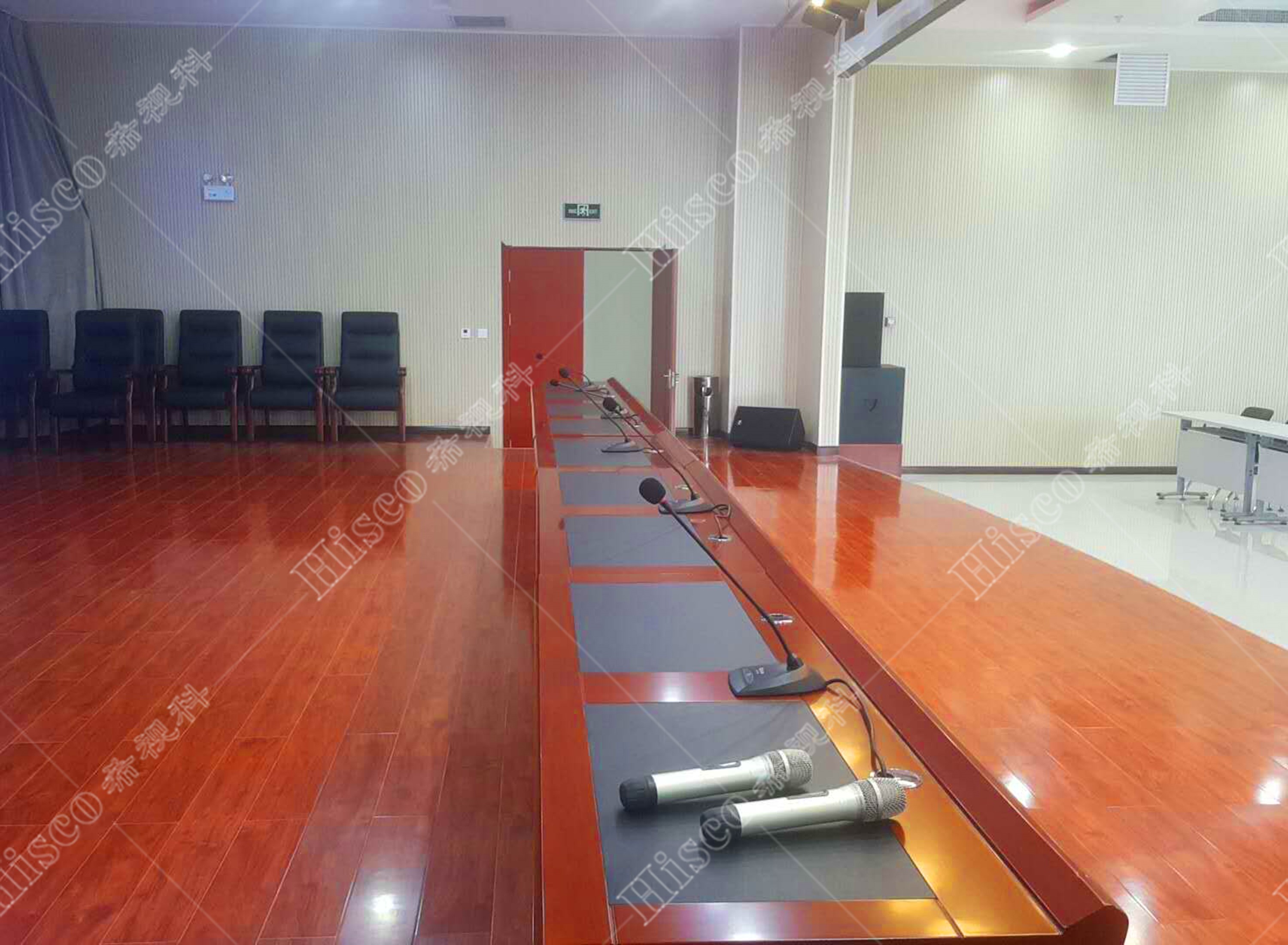 会议室内需要需要做扩声系统、会议系统、显示系统,智能化系统;满足日常开会的讨论、发言等等。综合礼堂的设计,追求语言的清晰图和饱和度,声压级级要求达到国家厅堂扩声系统一级标准。同时预留了丰富的接口,方便以后系统的扩展,实现整个系统的强大功能。同时有演出用的舞台,配置了专业的舞台灯光系统和演出扩声系统,加了超低音音箱和效果器,追求声音的饱满度和浑厚感,能够满足文艺演出,会议报告,庆典活动召开等功能。